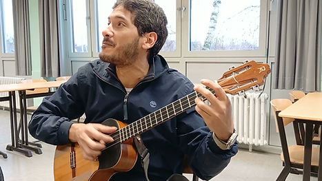 Mit Pacho Flores durfte ich einen Trompeter der Weltklasse an meiner Schule begrüßen! Im Video spielt sein Partner Leo Rondón nach dem Konzert im Musikraum seine Cuatro, eine viersaitige Gitarre, die in der Größe einer Ukulele ähnelt.